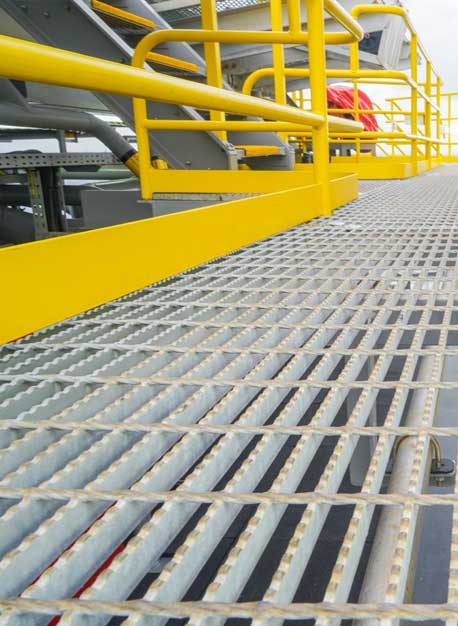 Yürüyüş yolları, platformlar ve ızgaralar, gemilerde mürettebatın güvenli bir şekilde hareket etmesini sağlayan ve çalışma alanlarını destekleyen önemli yapısal unsurlardır. Bu elemanlar, özellikle geminin makine dairesi, kargo bölümleri ve dış yüzeylerinde etkin erişim ve işlevsellik sunar. Dayanıklılık, güvenlik ve ergonomi, bu yapıların tasarım ve imalatında temel unsurlardır.